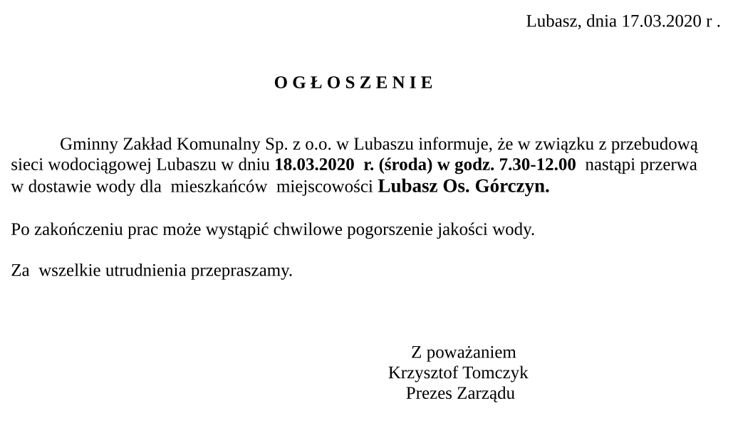 GZK Lubasz © 2026. Wszelkie prawa zastrzeżone.